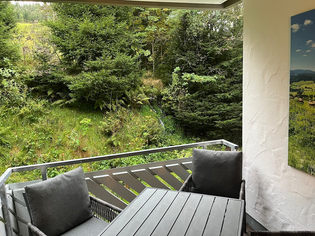 Geniesse entspannte Tage im Hochschwarzwald und lasse es dir im Appartement Schwarzwaldeck gut gehen! Starte deine Wandertouren auf den Wanderwegen direkt hinter dem Haus oder nutze die kurzen Wege zu den Skiliften im Winter! Die frisch renovierte Zwei-Zimmer-Wohnung bietet Platz für maximal 4 Personen, eine voll ausgestattete, kleine Küche, ein Balkon ins Grüne mit Blick auf einen kleinen Wasserfall, ein gemütliches Schlafzimmer und ein geräumiges Wohnzimmer mit Schlafsofa.