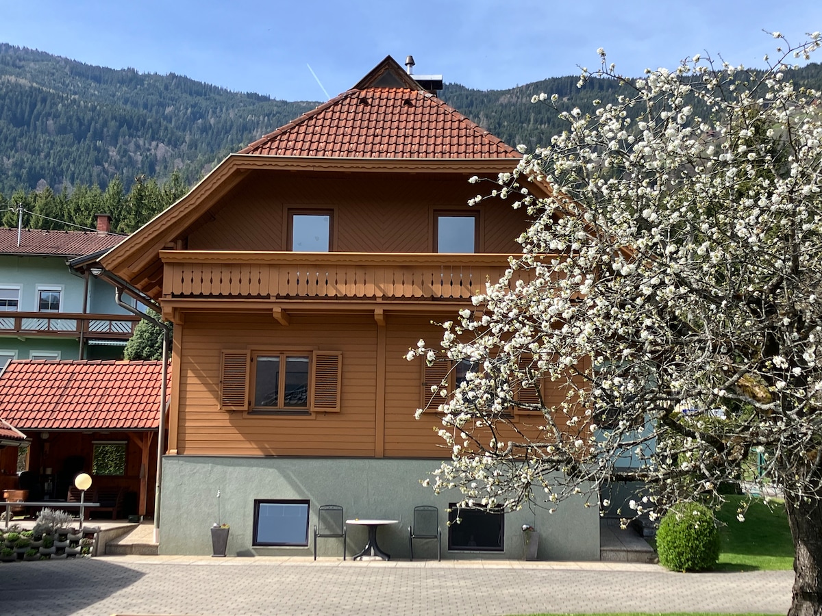 Come with your family or a couple of friends in this beautiful house between the mountain Gerlitzen and lake Ossiach. Garden terrace, spacious parking, fully equipped kitchen, 2 WC's, comfy sofa. The house is located in the central of a village with close by super markets, banks, pizzerias, tennis court, bakery). summer: Lake-Ossiach winter: Ski-bus station to ropeway Gerlitzen ~500m away.