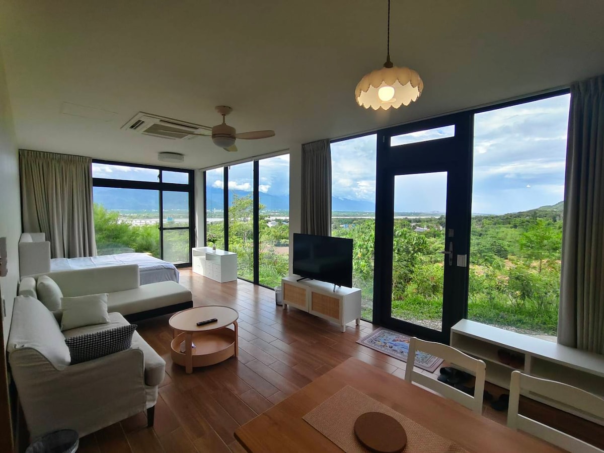 豪宅體驗,平價享受,對自己好一點 🎉入住須知 請詳閱再下訂 一天只接待一組客人✅入住即包棟。 🔴4人或以內開一間四人房 🔴5人或以上開兩間四人房 🔴房型現場依喜好挑選。 🔴若4人內需兩間房,則直接下訂5人即可。 ( 本棟格局為兩間四人房+挑高客廳 ) 民宿坐落於花蓮的海岸山脈,面向中央山脈和花東縱谷,並使用大面積的落地窗,在室內的每個角落都能欣賞花蓮的大山大水,躺在沙發、床上、浴缸泡澡都能在大自然的氛圍中身心愉悅。 ⛰️🪵🪨🪴 設計理念核心為 自然x高級x放鬆,從自然中追求細膩的表現,把建築物與大自然完美融合,風格採用日式侘寂風加上現代風元素,使用大量的天然採光,配色在於自然界中大地色系,建材選用也以天然材料為主,像是木質、石材等,保留天然的紋理和質感,可以讓人在空間中追求內心平靜和自然之美。