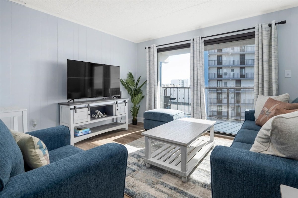 Your family will be close to everything when you stay at this beautiful condo located right on the beach with expansive balcony views of both ocean and bay. With the best amenities around, this year-round rental is equipped with an enormous indoor pool, basketball and tennis courts, shuffleboard, saunas, gym, library, sun deck, & game room with arcades, claw machines, billiards, and air hockey tables. This 2-bedroom unit comfortably sleeps 6 which makes it ideal for families or couples alike.