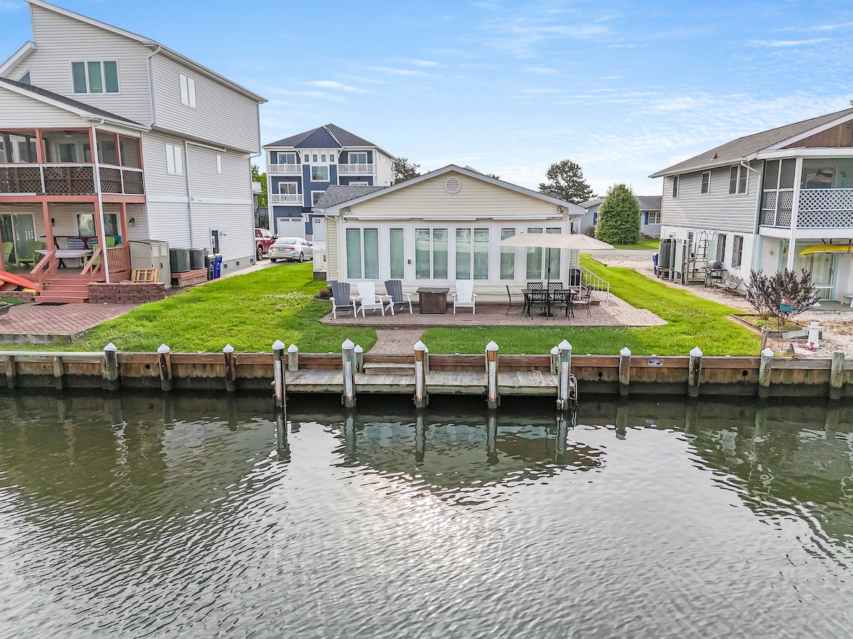 After relaxing at the beach (just a 7 min walk away), unwind on our deck "watchin' the tide rollin' away!" Get the best of the bay & the beach with this dog-friendly hidden gem! Imagine evenings enjoying the bay breeze as you crack crabs on the deck! Relax inside our open-concept great room that allows everyone to be together. Fish on our private dock or use it for your own boat or jet-ski to dock there. Witness spectacular sunsets with our Kayaks. Enjoy a well lit, private work space to virtual work w/ high speed internet! A new wood CRIB now in master suite for restful sleep! The pools and tennis/pickleball courts are only a few blocks away for your enjoyment! Plus, a truly unique OUTDOOR MOVIE EXPERIENCE for all our guests to make for the best Vacay EVER!