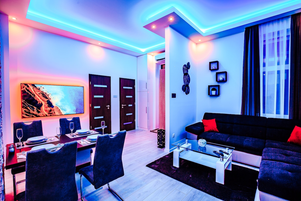A lakás mindössze pár perces sétára található a város népszerű látványosságaitól. Autóra nem lesz szükséged, hiszen rövid sétával számos étterem, cukrászda, bár, kávézó, élelmiszerbolt és híres nevezetesség elérhető. A felújítás során csak a legjobb minőségű anyagokat, berendezéseket és bútorokat használtuk, hogy stílusos, luxus szálláshelyen pihenhess és maximális kényelemben érezd magad.
