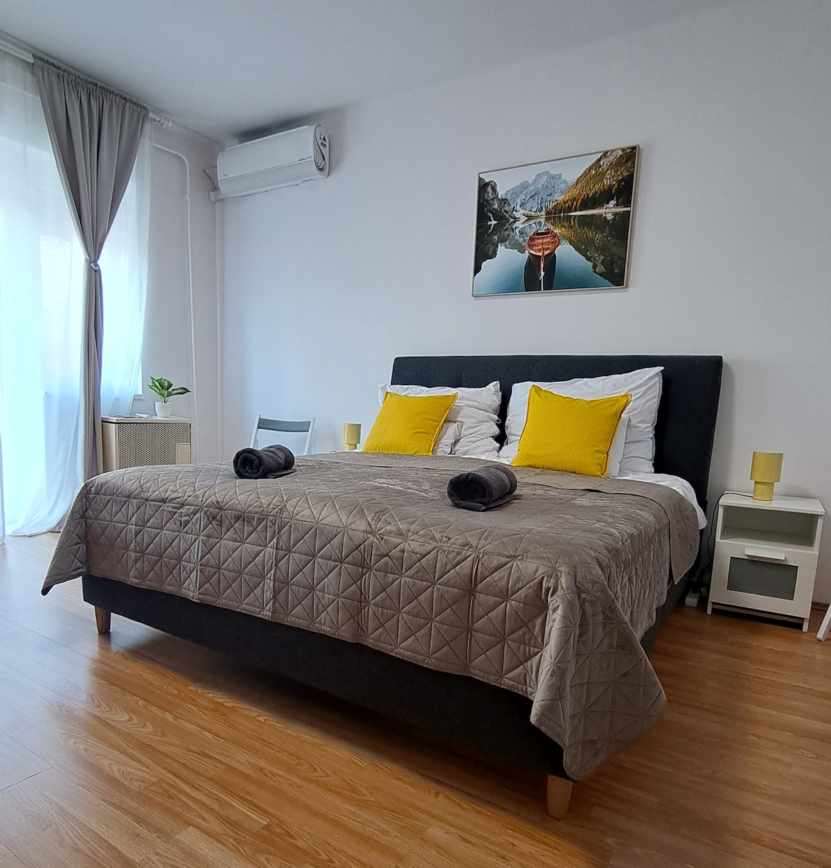 A ház a nagyállomás közelében van . Külön álló épület a belvárostól 1.5 Km. 20 perc gyalog . Tömegközlekedési eszköz van az épület elött. A lakás prémium kategoriás klimás szellöző rendszerrel ellátva. Külön bejáratú hálószobák 3 db, a nappaliban egy 2 személyes kanapé található. A fedett terasz a lakáshoz tartozik , a konyha teljesen fel van szerelve. Wifi van. a parkolásért nem kell fizetni. A parkoló a ház elött van , kamerával ellátva.