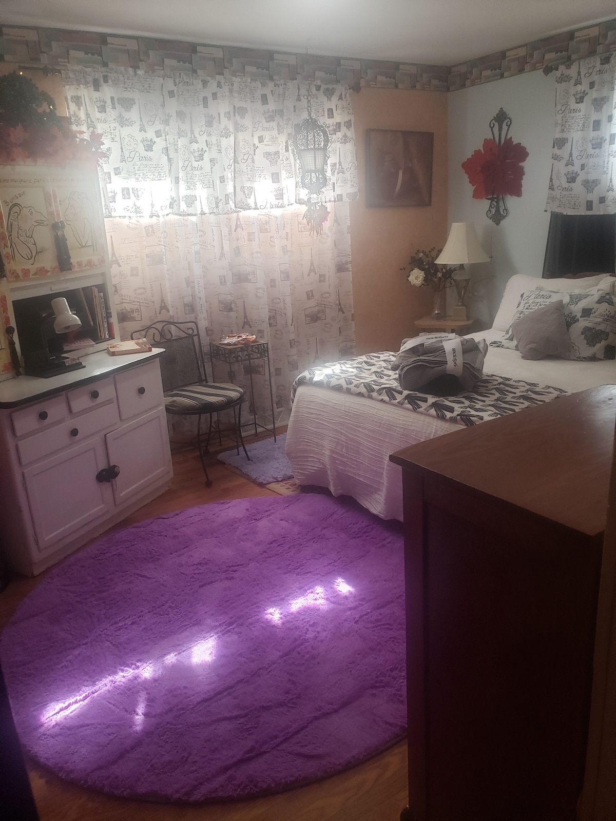 Welcome to our charming second-floor space in the heart of Tower Grove South, perfect for art lovers, couples, and city explorers! Nestled in a 100-year-old duplex, our space retains its original charm with thoughtfully preserved characteristics, while offering a modern twist with funky, fun decorations throughout. You’ll find a carefully curated collection of vintage pieces and unique artwork, highlighted by a stunning mural by local tattoo artist Beth Glass.