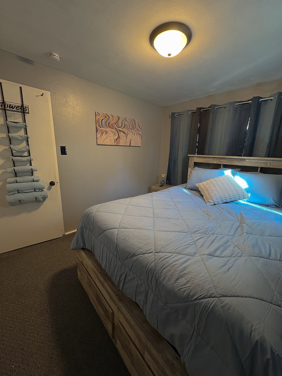 Unwind in this cozy 2-bedroom home designed for comfort and fun. Enjoy a fully equipped kitchen, comfortable living area, and a game room for all ages. Conveniently located near the highway, just minutes from a park with a pool, and only 13 minutes from the airport. Ideal for family fun or easy travel! Traveling with a group? The neighboring unit is also available. Book both sides for more space and extra privacy for larger families or friends traveling together!
