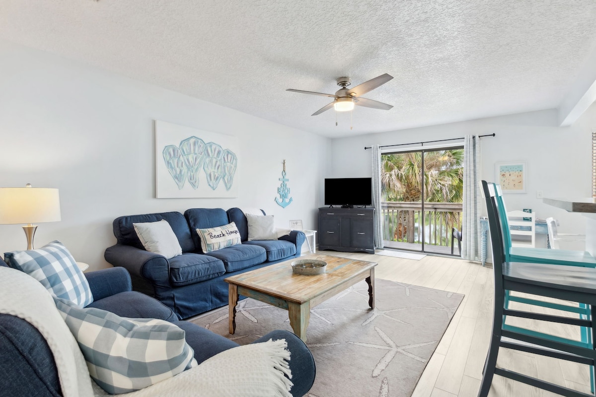 Our tranquil beach retreat, perfect for extended and short stays. Just a 5min walk from Fernandina Beach. Nearby eateries beckon, and shopping at Walmart and Harris Teeter is a short drive away. Relax into beach-inspired colors, where comfort reigns. Our cozy 2bed, 1bath abode (KING & queen beds) offers ample space with fully equipped kitchen for up to 4 guests Amenities include pool, tennis court, and a children's playground! Beach chairs, umbrella and beach cart provided within unit. <3 ^^