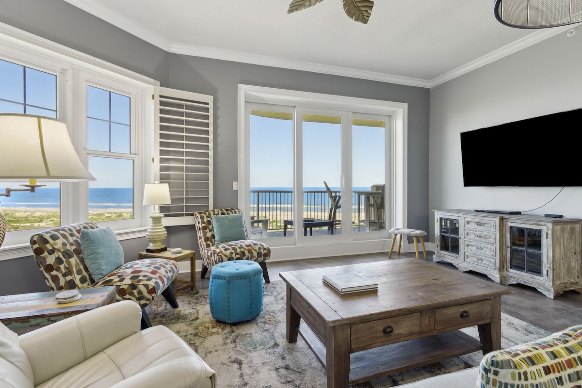 "This is my favorite section of beach, rarely crowded like the other parts of the island” - Anne Looking over the gorgeous Amelia Island beach-front in multiple sunrise-facing directions from the top floor, this newly remodeled luxury retreat is unique fun. Hear the waves from both of the king bed suites. Steps to the sand. Minutes to the historic cobblestones downtown "Not your grandma’s beach house…a bit of oceanside luxe with amazing views... private beach access and a great pool" - C.H.