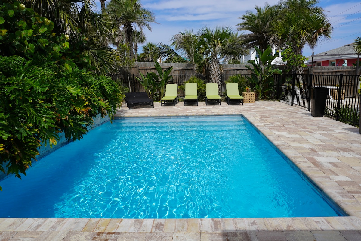 Jacksonville Beach is Open with No Restrictions!...Instant Book today! Palm trees abound! Splash into a clean, relaxing stay by the ocean in this renovated, centrally located two bedroom beach getaway. Just a three minute, one block walk to the water.