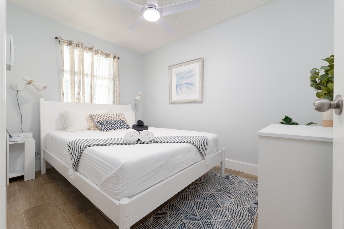 5 min walk to beach king&queen bed w full kitchen