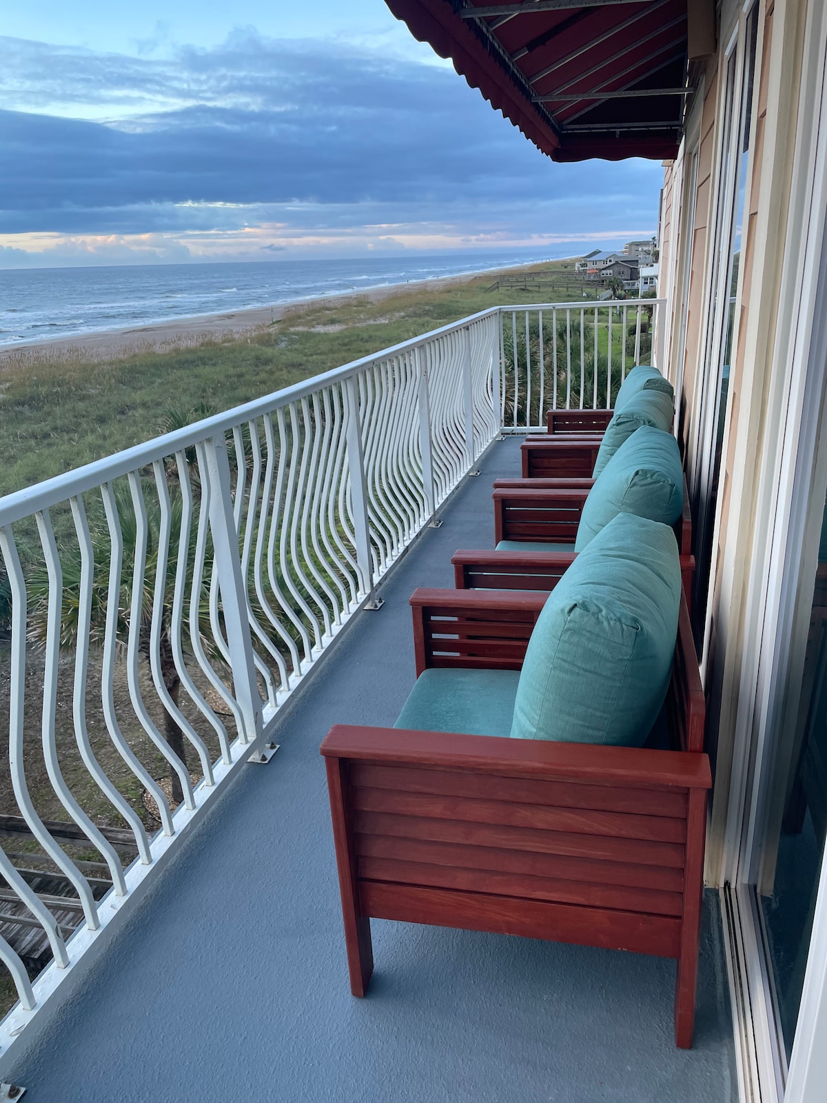 Clean, beautiful and all the comforts of home. 2 bedroom/1 bath with walk in shower, condo with the ocean so close that you can almost touch it! Sleeps 4. A 20 ft balcony gives you the best seat in the house for sunrises, sunsets and dolphin viewing. Master bedroom is on ocean side. 2nd bedroom has a queen bed. A fully furnished kitchen means you don't have to eat out every meal .. enjoy dinner on the great balcony! Perfect for a romantic getaway or a family vacation.