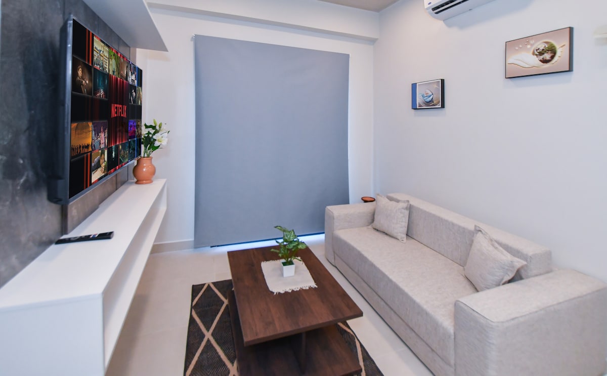 Unwind in this beautiful apartment (60 m²) nestled in a quiet neighborhood—perfect for families, business travelers, and remote workers alike. Take in the views from the rooftop featuring a swimming pool, BBQ area, coworking space, and a kids' playground—ideal for both relaxation and productivity.