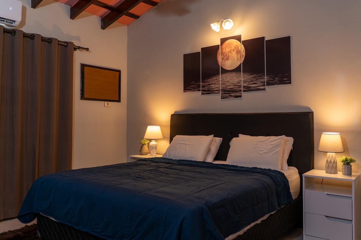 Bello departamento de primer nivel en Asunción. Dos suites con camas matrimoniales, Wi-Fi rápido, Smart TV y aire acondicionado en todos los ambientes. Cocina completa con isla, heladera, hornallas y vajilla. Balcón techado para relajarte. Incluye ropa de cama hotelera, toallas y acceso por cerradura digital. Zona segura, a pasos de supermercados, restaurantes y el eje corporativo. Estacionamiento interno sujeto a disponibilidad.
