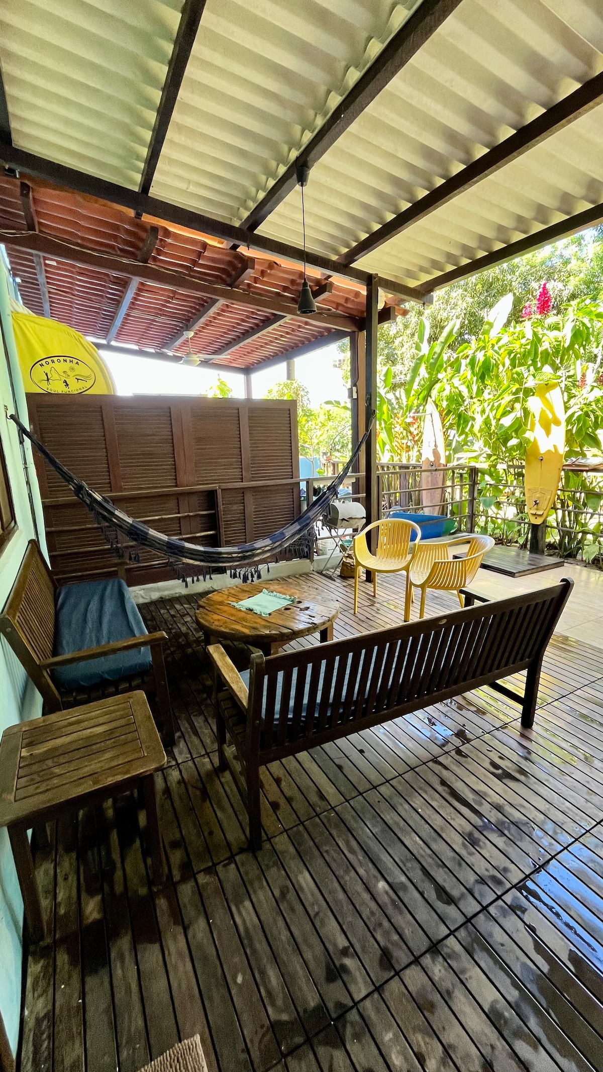 Esta acomodação ê perfeita! com área social, ducha pós praia e um pátio com slack line e jardim! ideal para curtir uma noite fresca ao ar livre, Muito mais privacidade e autonomia. Sua casa de praia em Noronha.