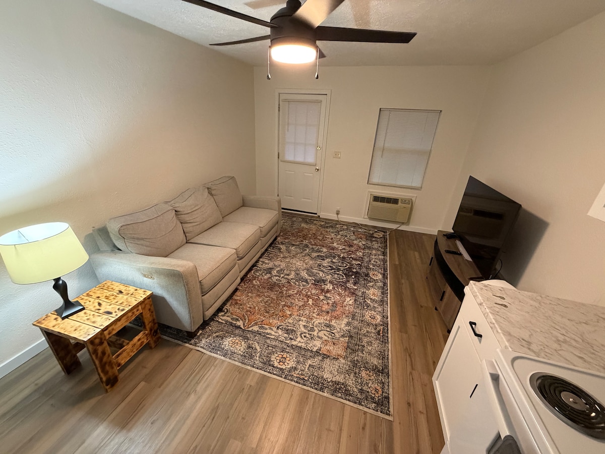 Enjoy tiny farmhouse life in this adorable 375 sq. foot cottage. Loaded with everything you need this little cottage is nestled privately behind some trees on our 11 acre farm. You will soon forget how close you are to town with the beautiful view from your windows and the pasture fence just steps out the back door. Whether you’re here for the wineries, amazing hiking, an SIU event (3 miles) or to visit with family, the Homestead Cottage will provide a comfortable retreat from any adventure.
