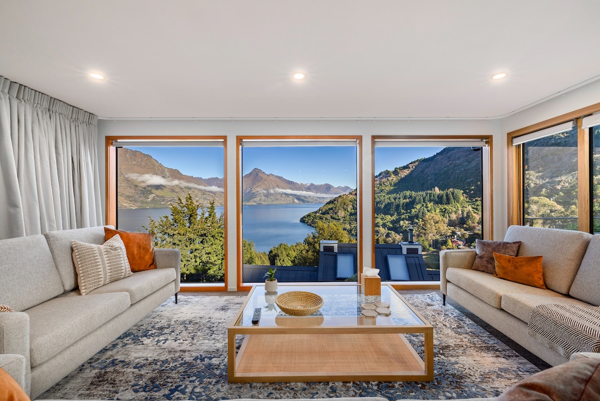 Blue Water Heights: An exquisite multimillion-dollar home nestled in a relaxing residential area offering endless views of the Remarkable mountain range and breathtaking panoramas of Lake Wakatipu. Situated just a brief 5-minute drive from the town center, this bespoke four-bedroom home, meticulously crafted and finished in late 2020, provides a host of modern amenities to guarantee a delightful and tranquil stay.