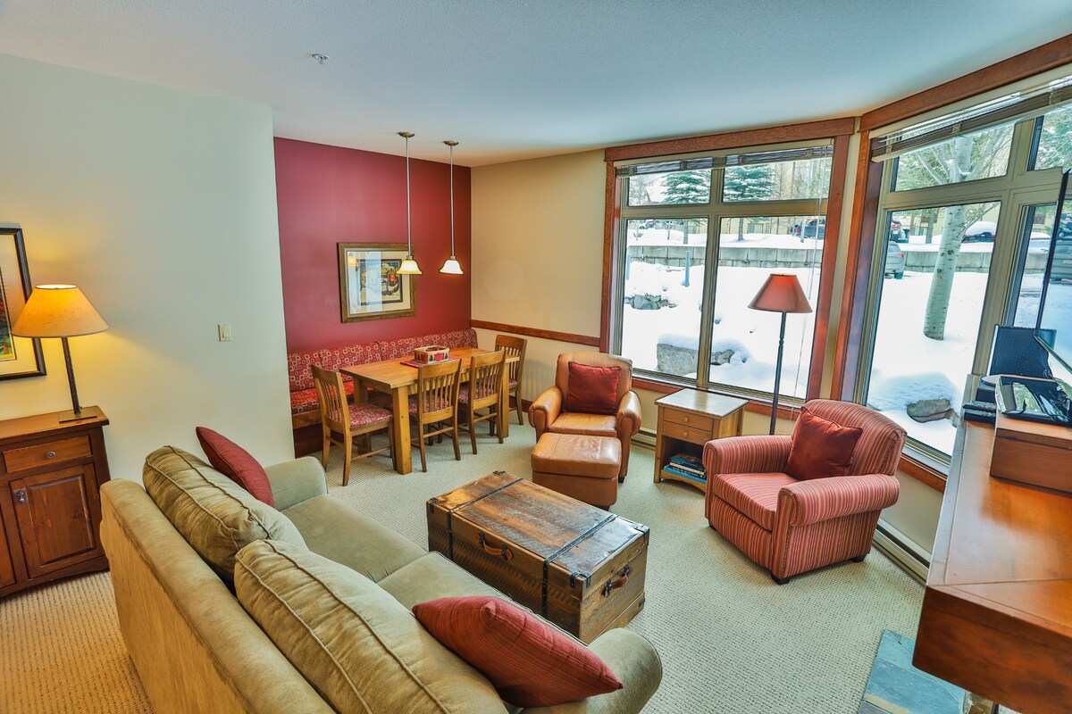 Welcome to our true ski in/ski out condo, located at the Griz Inn, at the base of the t-bar and Elk chairlift. The 1 bedroom condo sleeps up to 4 people with a queen bed in the bedroom and a queen Murphy bed in the living room. Free hillside parking, an indoor pool, outdoor hot tub, laundry, ski lockers, and a bike room is available. We are located on the backside of the building, which is the “quiet side” and maintains a much more comfortable temperature in the summer.
