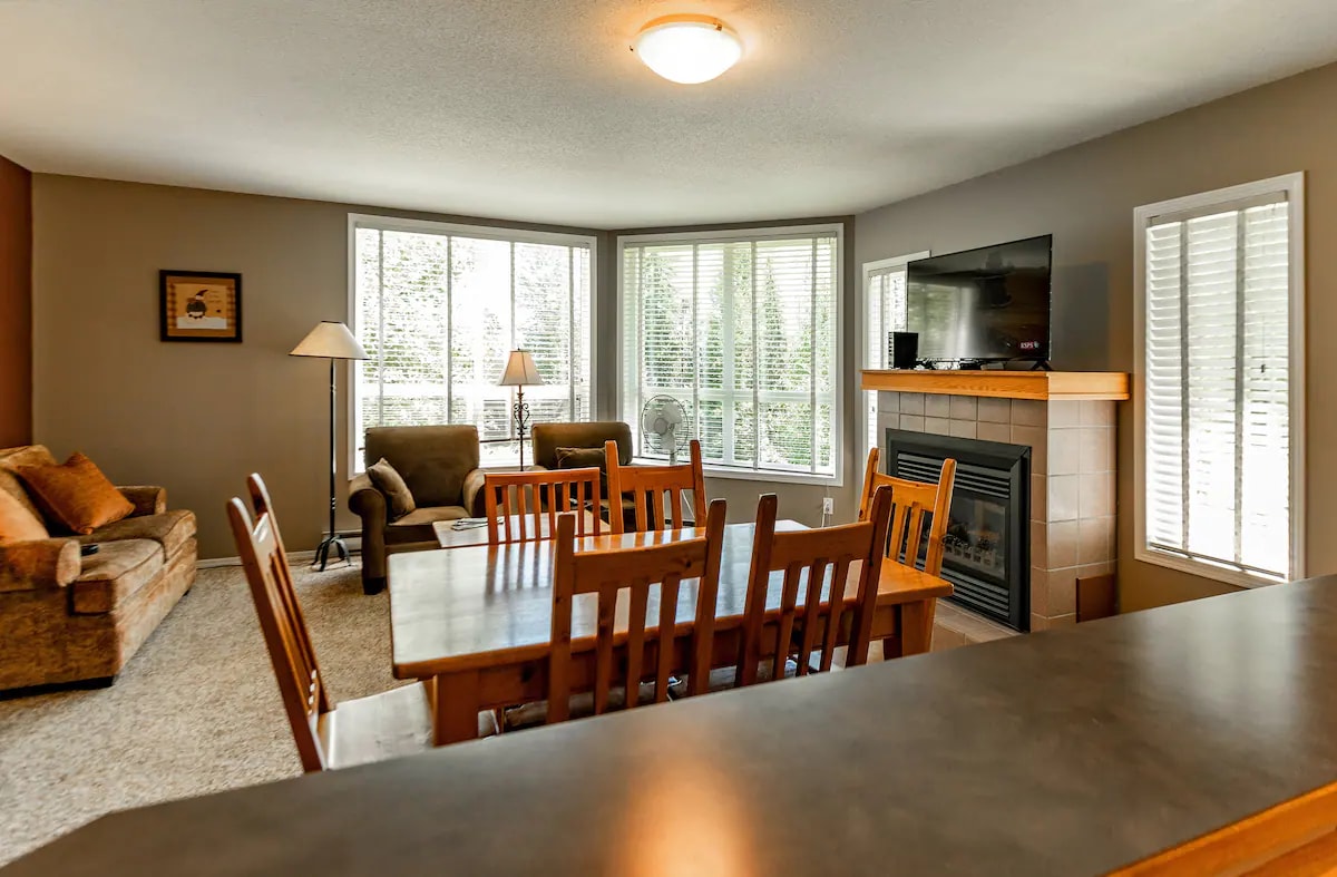 This unit offers panoramic views of the Fernie alpine resort and the neighboring mountains and green scape. The open-plan living makes it a perfect space to enjoy with family and friends. With the ski lifts and bike trails just a short walk away, you can relax in the morning and come back for lunch if you want! Within the complex you can find multiple outdoor hot tubs, games’ rooms, and a sauna. For food, dining, and entertainment Fernie's historic downtown is just an 8-minute drive away.