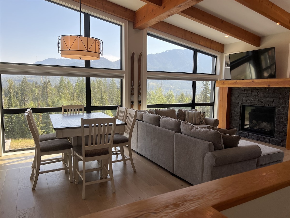 Some of the best views of the ski hills in Fernie! With large picture windows, guests can enjoy the dazzling evening sun in the room. Enjoy the comfy queen bed, along with heated floors in the entrance and bathroom. Guests have full use of the kitchen, dining area and breakfast bar. Cozy up by the fireplace in the evening and watch your favourite movies on the flat screen TV.