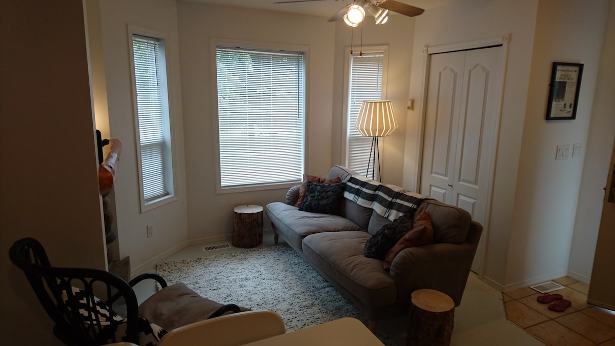 Your family will be close to everything when you stay at this centrally located place. 1000 ft² suite with separate entrance. Large windows with lots of natural light, well stocked kitchenette. bedroom with king size and double beds, living room with pull out couch, fire place and TV. Located below our main living area. We are a family of 4 and a dog, so there will be noise from upstairs. This suite is ideal for a family or a couple. No parties. No smoking on property.