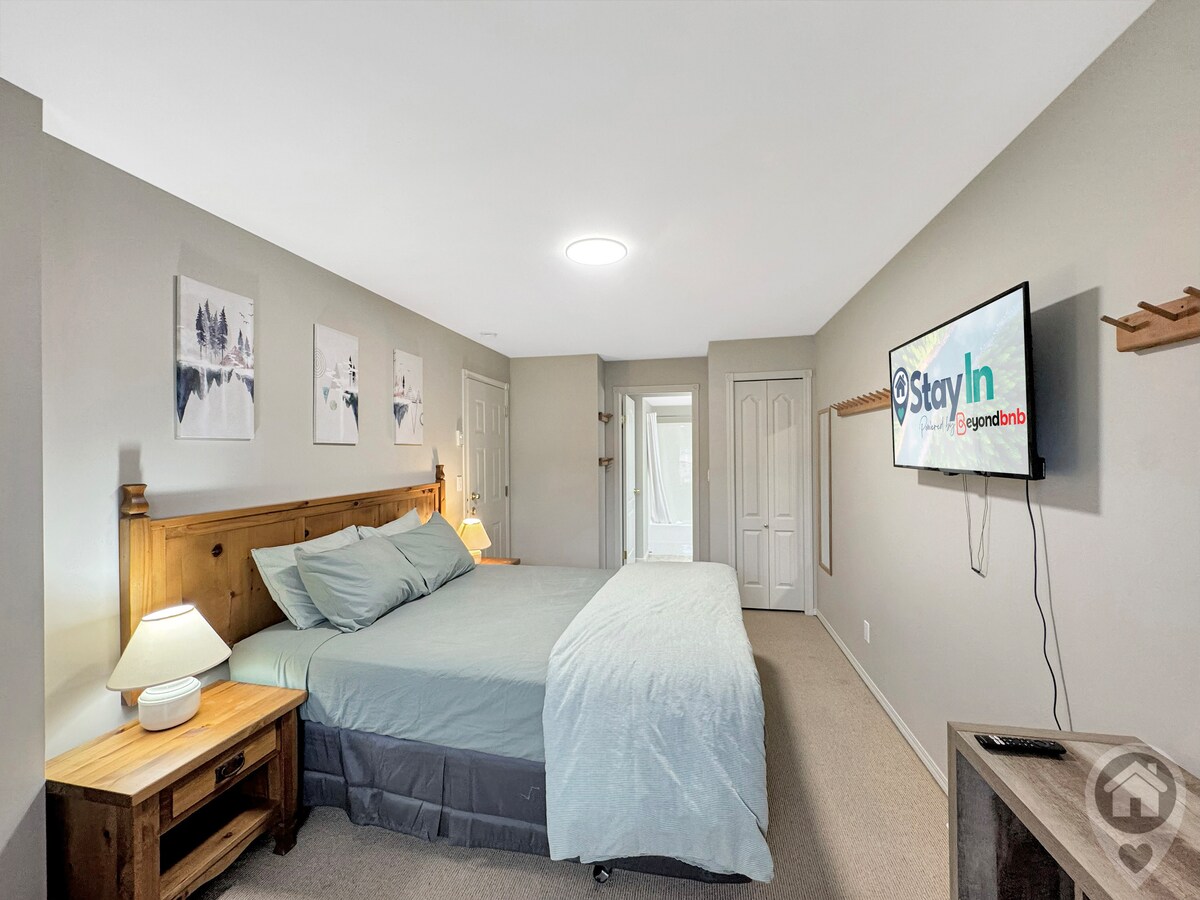 Have fun with the whole family at our one-bedroom suite in the Silver Rock Condos. The suite has a fully stocked kitchen, fireplace, cruiser bikes, and cozy patio with a BBQ. A queen bed and full sofa bed with a memory foam mattress. High speed internet service is perfect for working remotely. Netflix, Amazon Prime, Disney Plus 55 inch 4K tv are included, in addition to the on-site pool, steam room, outdoor hot tub, fitness room. Free heated underground parking with additional outdoor parking.
