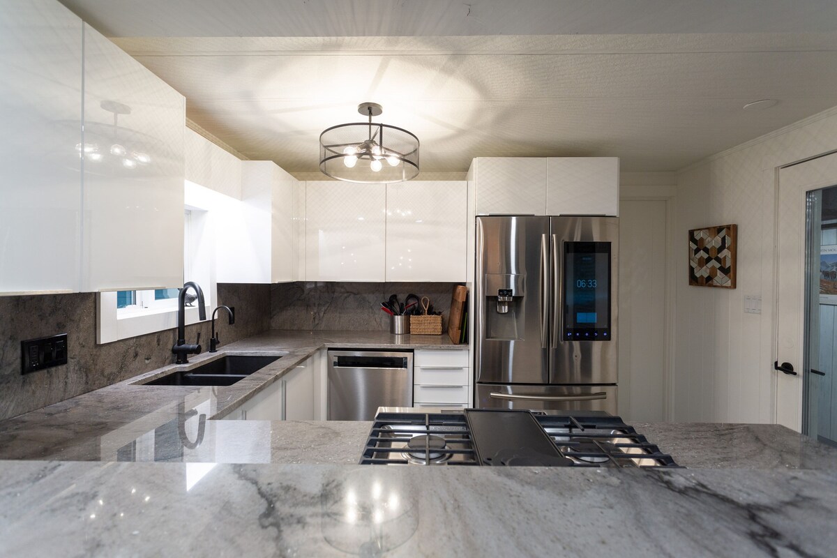 Our newly renovated, private house is a beautiful blend of style and comfort. Centrally located, You and your group will enjoy easy access to everything Fernie has to offer. Perfect to share with Friends, Family or Team. Enjoy the very spacious suite-like bedrooms which each have a living room, bathroom and 65-inch SMART TV with cable and excellent WIFI. Large fully stocked kitchen with a live edge dining table that can seat up to 6 people Plenty of storage for all your adventure getaway gear
