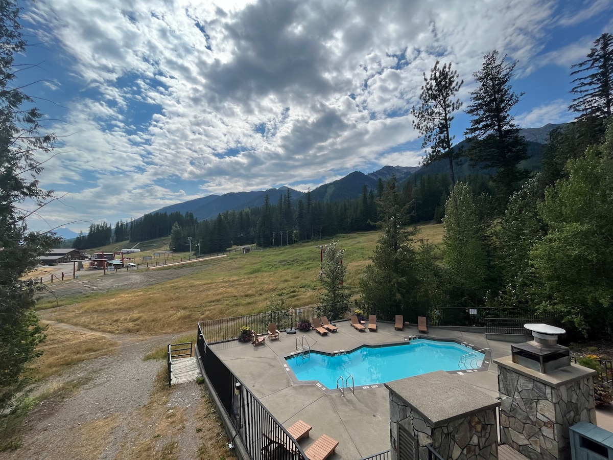 A fully equipped one bedroom condo 5 minutes from ski hill, 5 minutes from town, mountain bike trailheads close by. Great place to stage your adventures. Recreation activities within minutes: World class fly fishing, golfing, hiking, kayaking, snowshoeing, ATV, snowmobiling.... Pool, hot tub, steam room and exercise room in complex. Underground heated parking, wifi, cable. Washer dryer in unit.