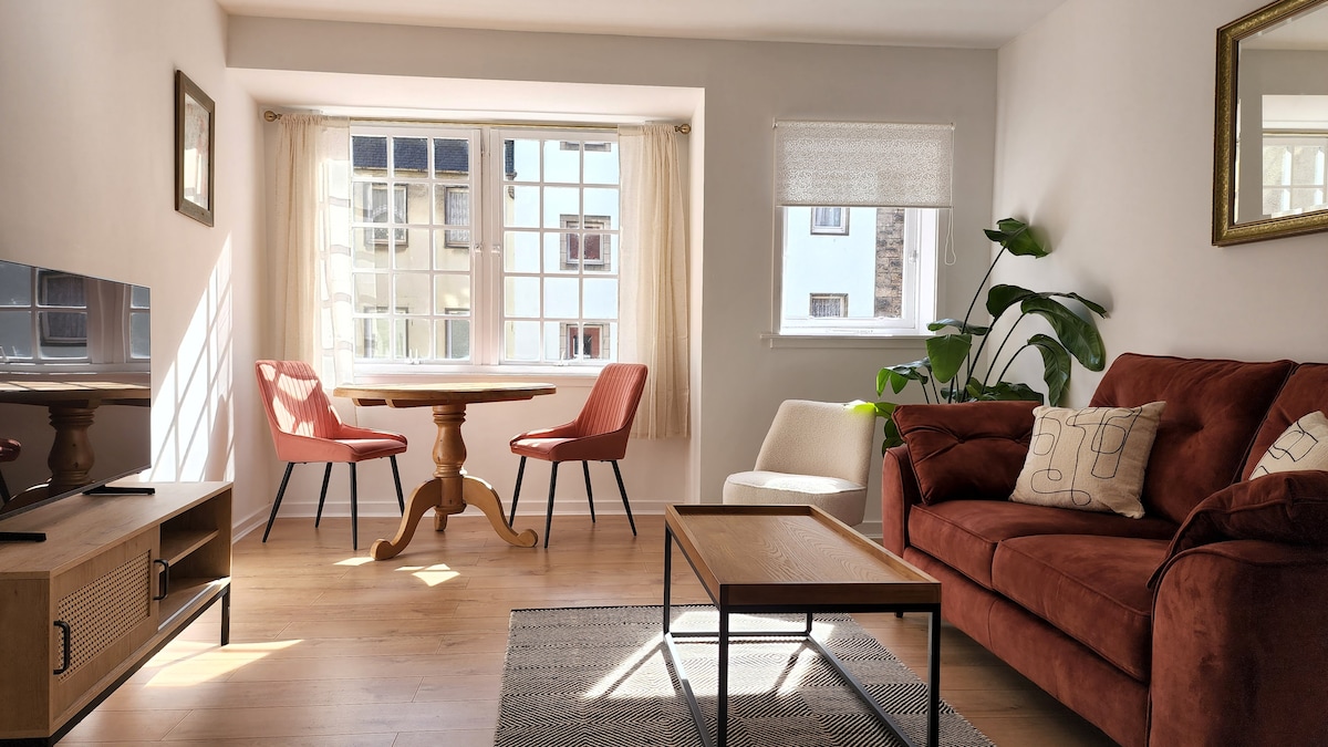 A refined base beside Glasgow Green, this bright three-bed home blends modern comfort with effortless warmth. Two king bedrooms, a single, and 2.5 bathrooms offer relaxed space for families or friends. The open kitchen is fully equipped for cooking or coffee rituals, flowing into a calm living area with smart TV and fast Wi-Fi. A private garden and parking add ease, while cafés, shops, and the city centre sit just a graceful walk through the park away.