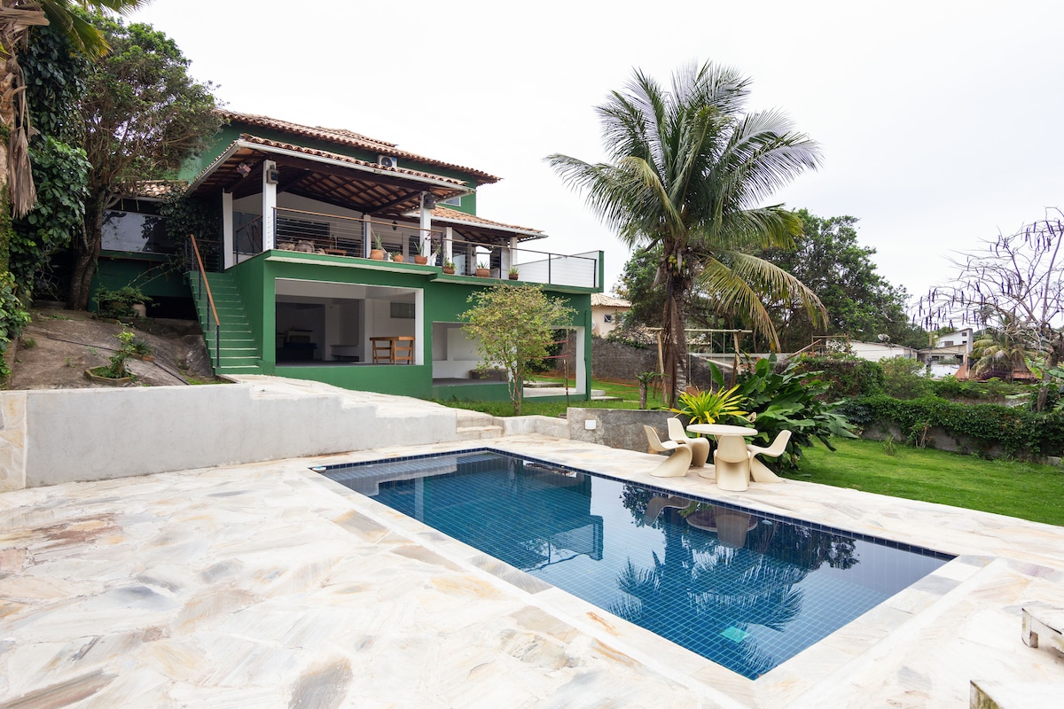 A Villa Dona Flor Ferradurinha é a casa dos sonhos em Buzios, entre a Praia dos Amores, Ferradurinha e Geriba. Desfrute de piscina aquecida com incrível vista mar, área gourmet, churrasqueira e cozinha completa. 600m2 de àrea construida e 2000m2 de terreno privativo com gramado e lindo jardim. 5 quartos sendo uma suite master com jacuzzi. Todos com ar split, roupa de cama e toalhas. Sala ampla com sinuca, tv, lareira. Indicamos funcionaria. Aceitamos pet. Vaga pra 5 carros. Alto padrão.