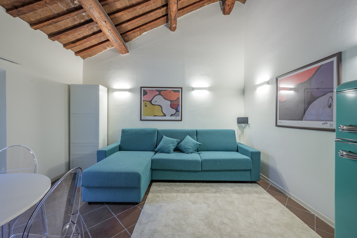 Trascorri il tuo soggiorno in un accogliente ed accessoriato bilocale mansardato in una palazzina signorile di due piani in pieno centro. La zona è silenziosa ed ideale anche per soggiorni di lavoro. Posto auto in parcheggio gratuito a 10m oppure a pagamento a 5min a piedi