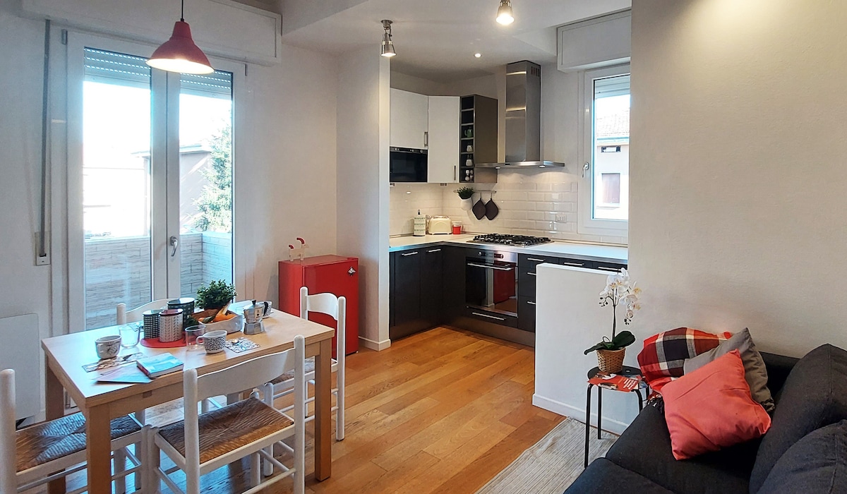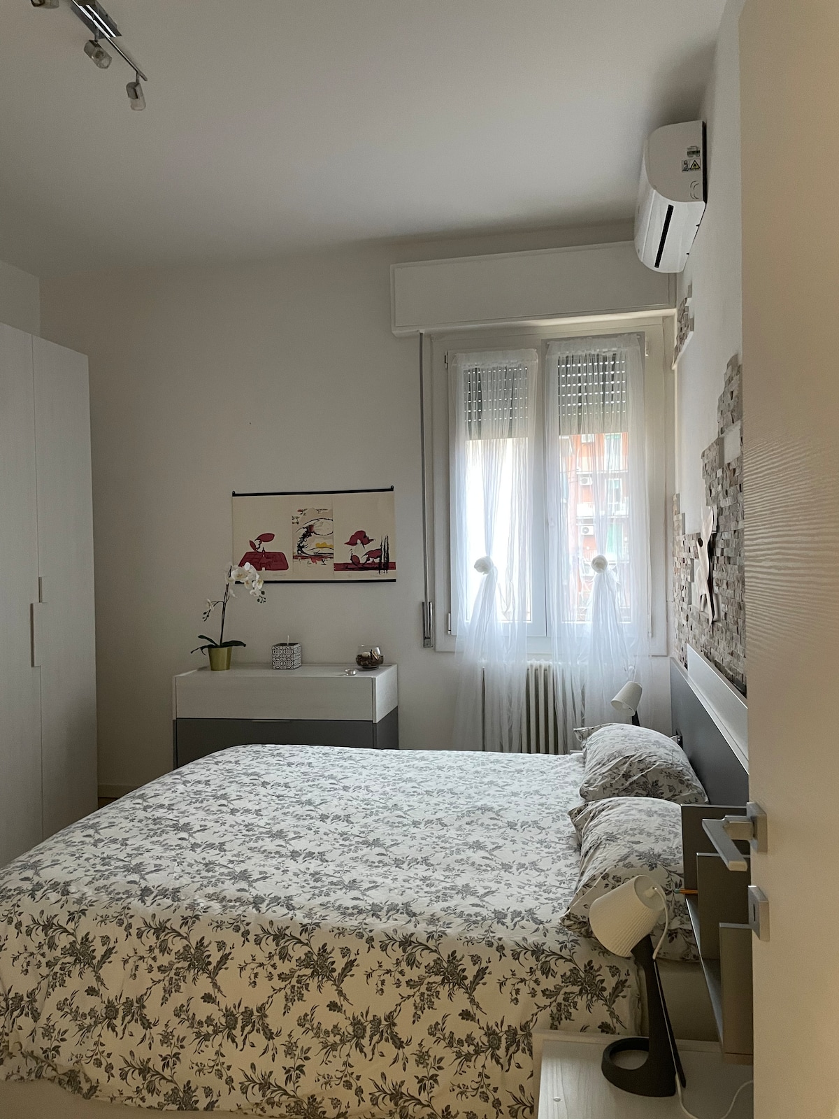 The apartment is located in a very quiet area located between the railway station, the city centre, the exhibition center and Villa Erbosa; it is also only 10 minutes by car from the Ospedale Maggiore. Located on the third floor without lift of a building with private courtyard and assigned car parks, the apartment lodges 4 people with a fully equipped living room-kitchen; double bedroom and twin bedroom with wardrobe and desk; bathroom with shower, bidet, hairdryer and washing machine.