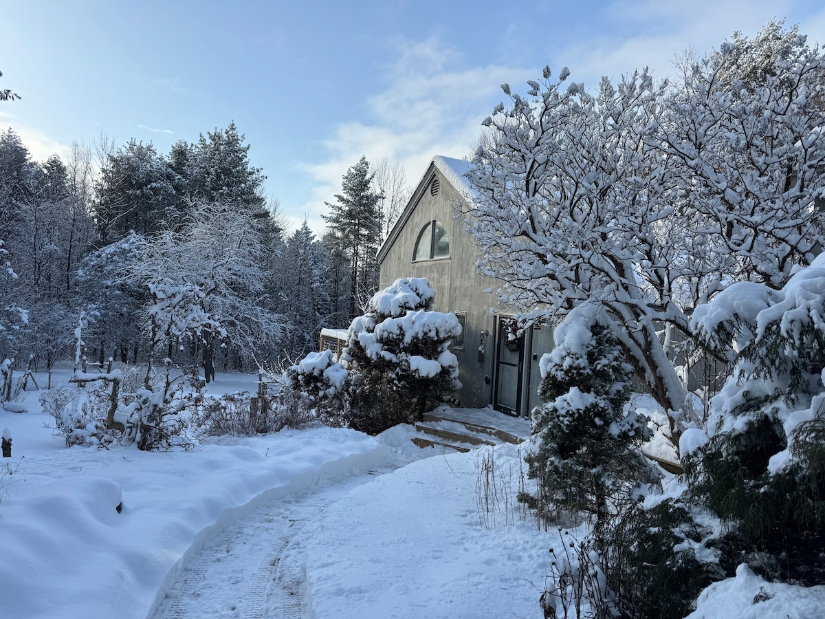 Escape to the sanctuary of the countryside yet only steps from a local café. This one-bedroom guest house in a beautifully converted barn sits on six acres with views of fields, forest, and the Adirondacks. Enjoy trails for biking, hiking, and skiing right outside, Lake Champlain just 5 minutes away, plus access to gardens, orchards, and an apothecary garden. Ideal for biohackers, wellness seekers, and anyone craving a restorative homestead stay.