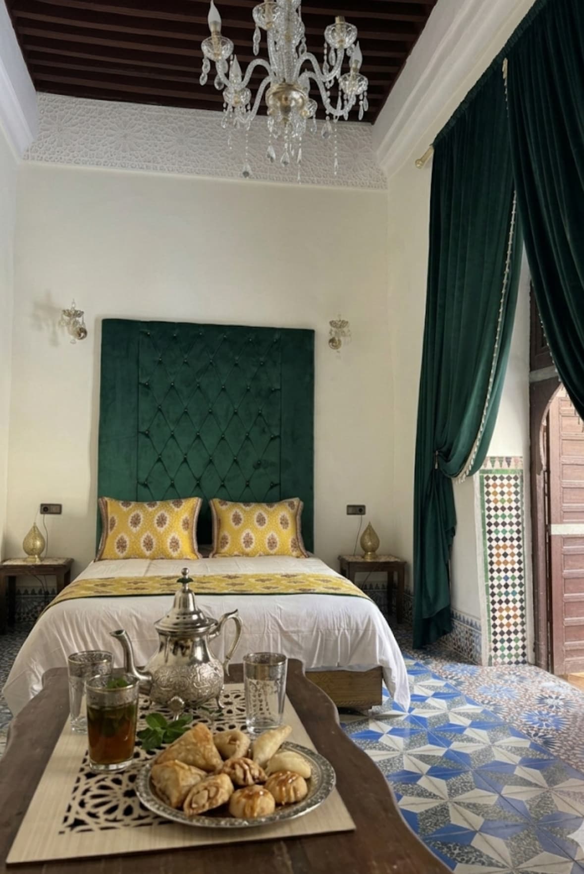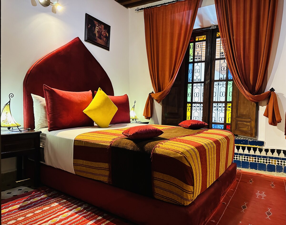 Masterfully blends timeless Moroccan style with modern design Located in the heart of the old Fez Medina. Offers an unparalleled experience. The expansive suite features a large bedroom, living room adorned with Moroccan mosaic private bathroom and air conditioning. Hand-picked furniture and exquisite fabrics create an atmosphere of elegance. Start your day with a delightful breakfast on your private terrace and enjoy ultimate peace and privacy. Experience the magic of Morocco like never before!