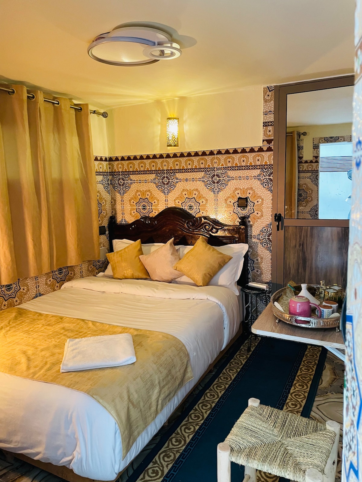 On the first floor of a 300 years old Dar , this lovely studio flat is located in the heart of the ancient Medina of Fes, Very close to Talaa Sghira, is near to local shops, cafes and restaurants. Minutes away you can visit the nearby tannery, Musee Belghazi in the oldest side the medina. You will be immersed in the everyday life and sounds of the city artisans children playng people transporting goods by caroza or mules... The studio flat offers a fully equipped kitchen and private bathroom.