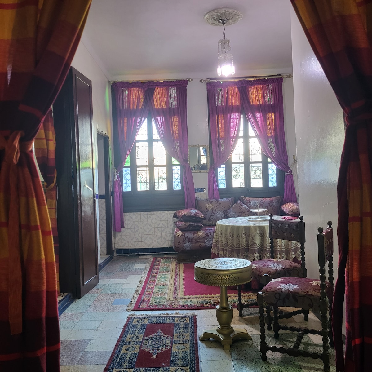 This flat is a typical Moroccan Mesrya. It has been traditionally restored and has a fully equipped kitchen, rooftop terrace, bathroom, 2 bedrooms, living room and patio. It is located on the 1st floor and has its own private entrance. The flat is located in Batha, in the Medina of Fes, close to the main street Tala Sghrira. Restaurants, small shops, bakery are within walking distance. It is a quiet area, known for its safety. It is the ideal spot to soak in the authentic life of Fes.