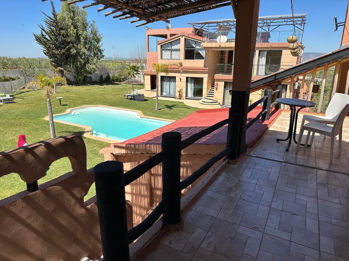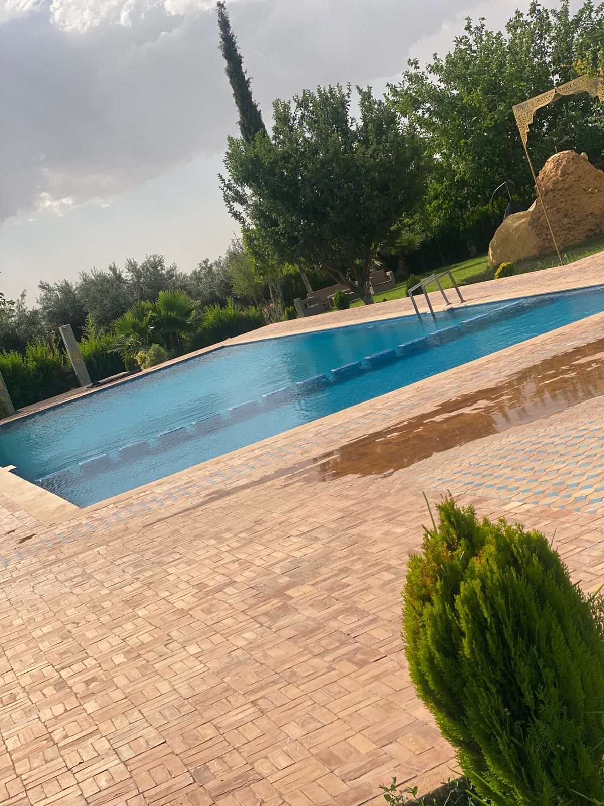 Stay in a luxurious villa combining comfort and elegance, located in a peaceful residential area of Fes. Enjoy an outdoor garden for al fresco dining, a cozy living room with a fireplace, a private pool (6x4m) surrounded by greenery, and a beautifully designed rooftop. Just 500 meters from the forest for nature walks and 20 minutes from the Medina. Perfect for relaxing while exploring the wonders of Fes. A true haven of peace for an unforgettable stay!