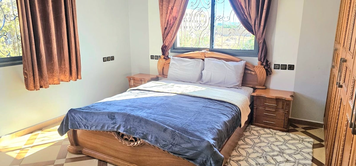 RDC d’une Villa ensoleillée dans un quartier sécurisé. Salon marocain avec Clim, Chauffage et Cheminé à bois. Cuisine équipée. 2 chambres . Vue sur jardin. Salle Bain. Salle d'eau. Proximité des services, cafés et restaurants. Wifi. Transport assuré de l'aéroport. Réduction pour un séjour de longue durée. Tarif exceptionnel pour les étudiant.e.s qui viennent pour un séjour scientifique. Le logement est pour les voyageurs passionnés de Culture. Le respect de la tradition locale est obligatoire.