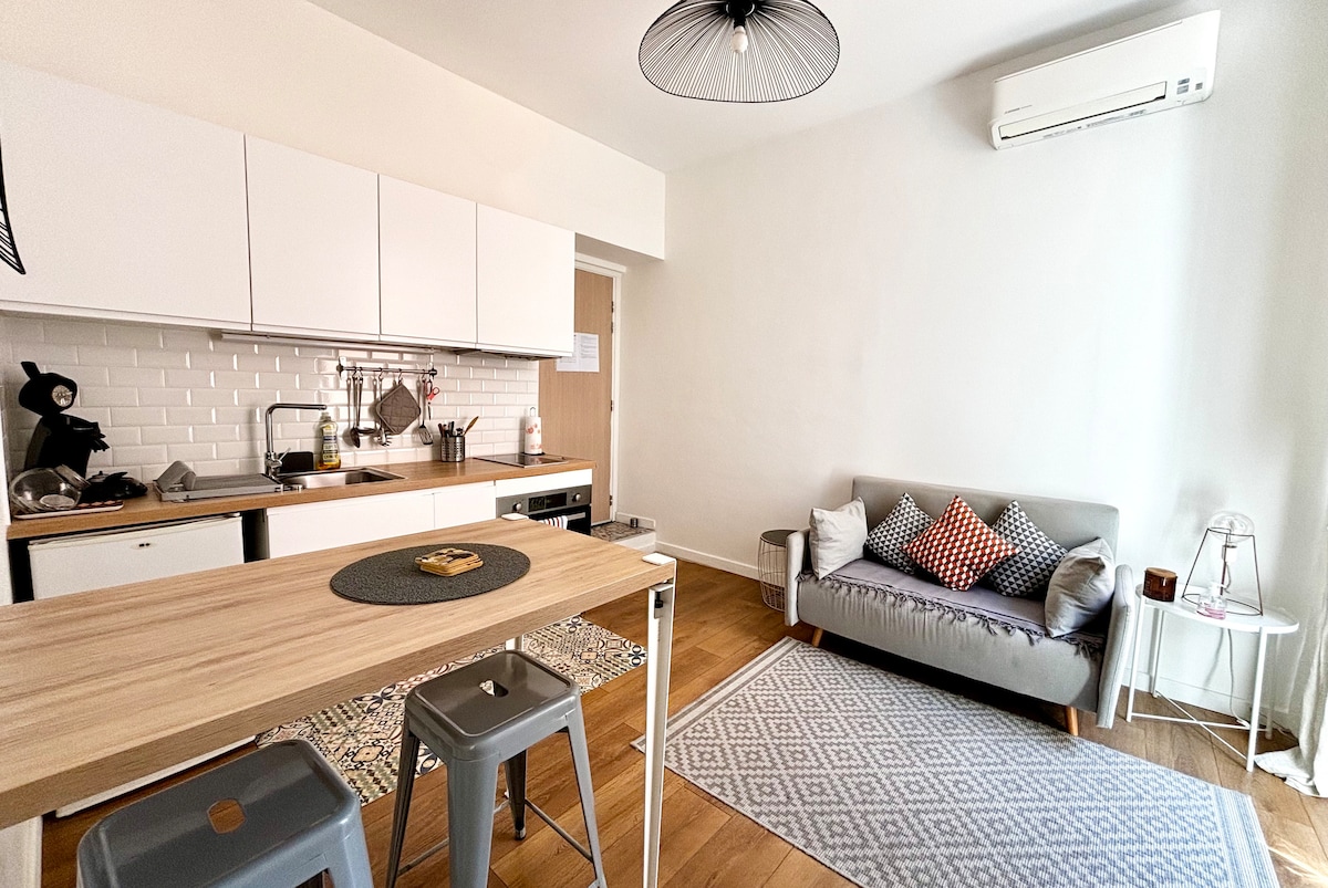 市中心空调单间公寓/2分钟到海滩