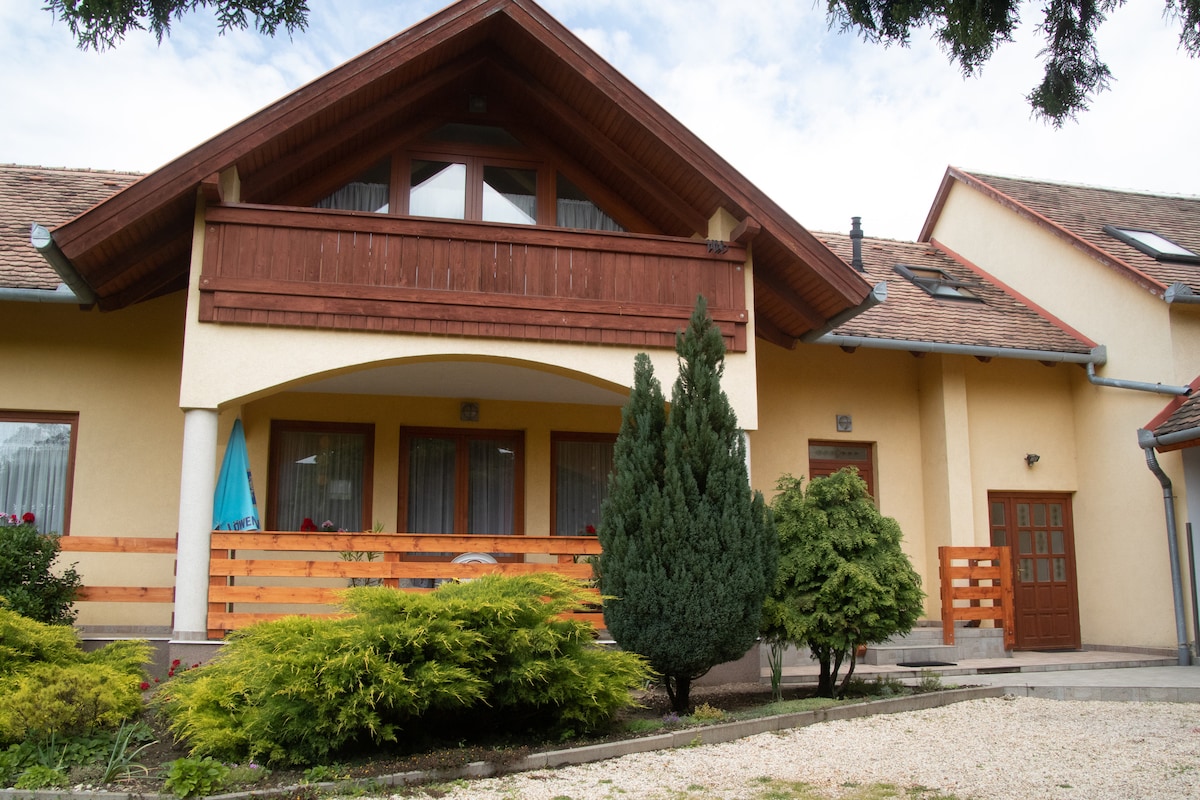 Enjoy the country feel while being close enough to beaches, mountains and Lake Balaton. Only 11 min drive from Lake Hévíz, It is the largest swimmable thermal lake in the world. Jacuzzi with Large Garden and BBQ make it perfect place to stay for families or friends. 2 Bedroom on the 2nd floor Apartment in Gyenesdiás. "We are well traveled and experienced with Airbnb and it was one of the places we liked best!" (Yoav&Tamar, 2022)