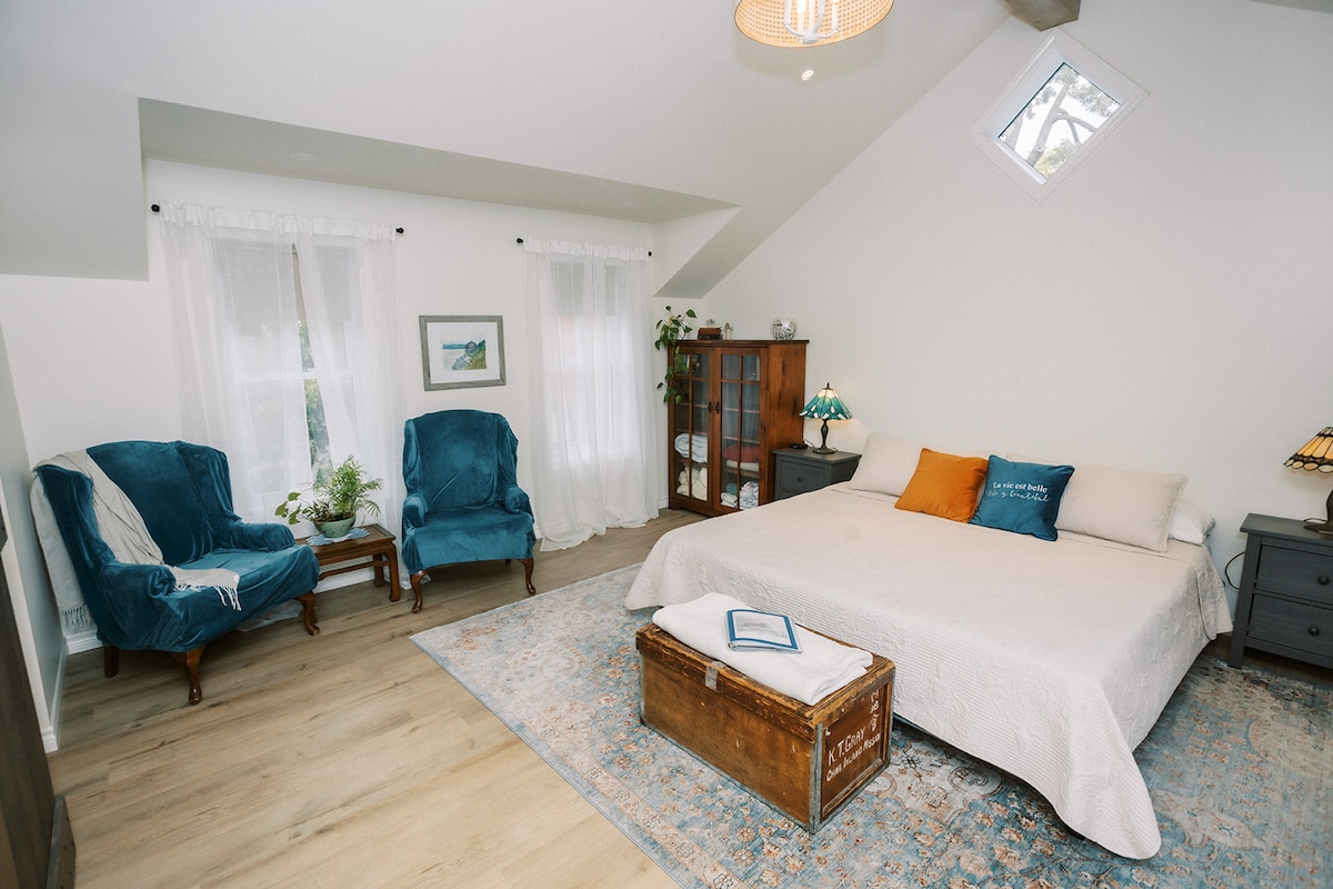 Art-Deco Studio Loft: A Blend of Historic Charm & Modern Luxury. Enjoy the unique mix of classic brick facades and modern design in this studio loft, featuring two Queen-sized beds, WiFi , and ensuite laundry. Just a stroll away from Stratford’s downtown cafes and shops, and a short walk to the tranquil Lake Victoria. Perfect for those seeking a luxurious , comfortable stay near the Stratford Festival! Need something slightly smaller? Check out our sister suite Mister’s Loft