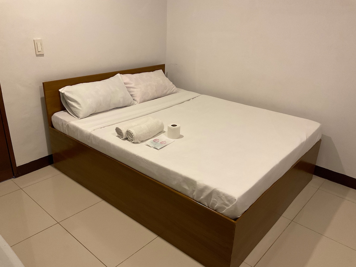 This minimalist and relaxing place is located in the center of Iloilo City and close to malls and must-see destinations(Casa Emperador, Molo church & plaza). This room has a queen size bed and offers "hotel-like" amenities such as 55-inch Sony TV, free wifi with fast internet speed, refrigerator, aircon, electric kettle, bidet with feminine and rear wash feature, water heater(hot shower), rice cooker, induction stove and cooking utensils. Swimming pool (2 persons) and gym are also available.