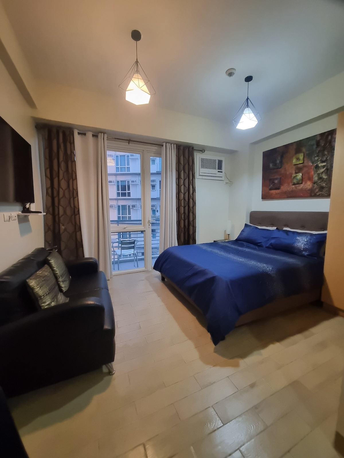 Newly designed studio unit with balcony, creates a unique opportunity to experience comfort and luxury. Offers a roll-out bed, ideal for couples, friends (2-3 pax) and small family with kid. Room amenities include: -Samsung Split Aircon System -50” Smart TV with premium Netflix subscription -Vanity and computer table -Wifi -Amazon Echo Pop Smart Speaker w/ Alexa -Hot Shower -Fridge and Freezer -Microwave, kettle, toaster, kitchen wares -Nespresso Coffee Pods Machine -Hair Blow Dryer and more!