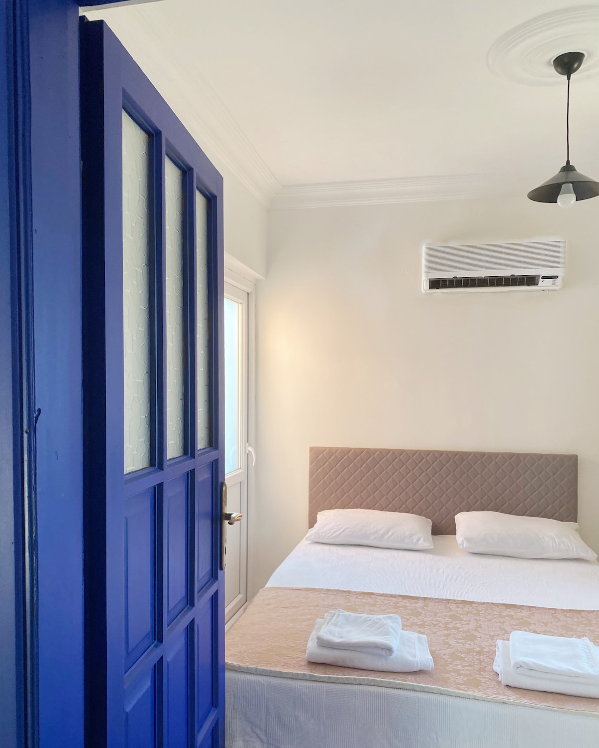 Located just 2 km from İnlice Beach and 5 km from Göcek city centre, this cute apart hotel consisting of a home atmosphere is ready to welcome you, our valued guests. Located on the ground floor, this room has a double bed and a single bed. It is equipped with TV, mini fridge, bed and bed linen sets, disposable toiletries, air conditioning etc. Breakfast is included in the price and a village breakfast is served.