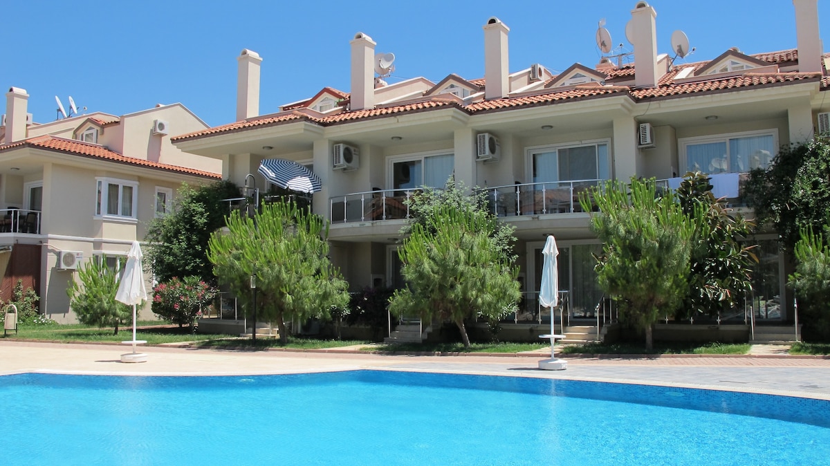 Denize Sıfır konumda,Fethiye Çalış Plajı'ında özel plajlı konforlu dairemiz 4 kişiye kadar konaklama imkanı sunar.Havuz manzaralı geniş balkonunda gün batımının keyfini çıkarabilir,plaja sadece birkaç adımda ulaşabilirsiniz. Dairemizde klima,yüksek hızlı internet,tam donanımlı muftak,çamaşır makinasi ve ihtiyacınız olan tüm eşyalar mevcuttur.Sitede oto park bulunur ve huzurl,güvenli bir tatil ortamı sunar. Aileler ve çiftler için ideal olan dairemiz,hem deniz hem havuz keyfini bir arada yaşatır.