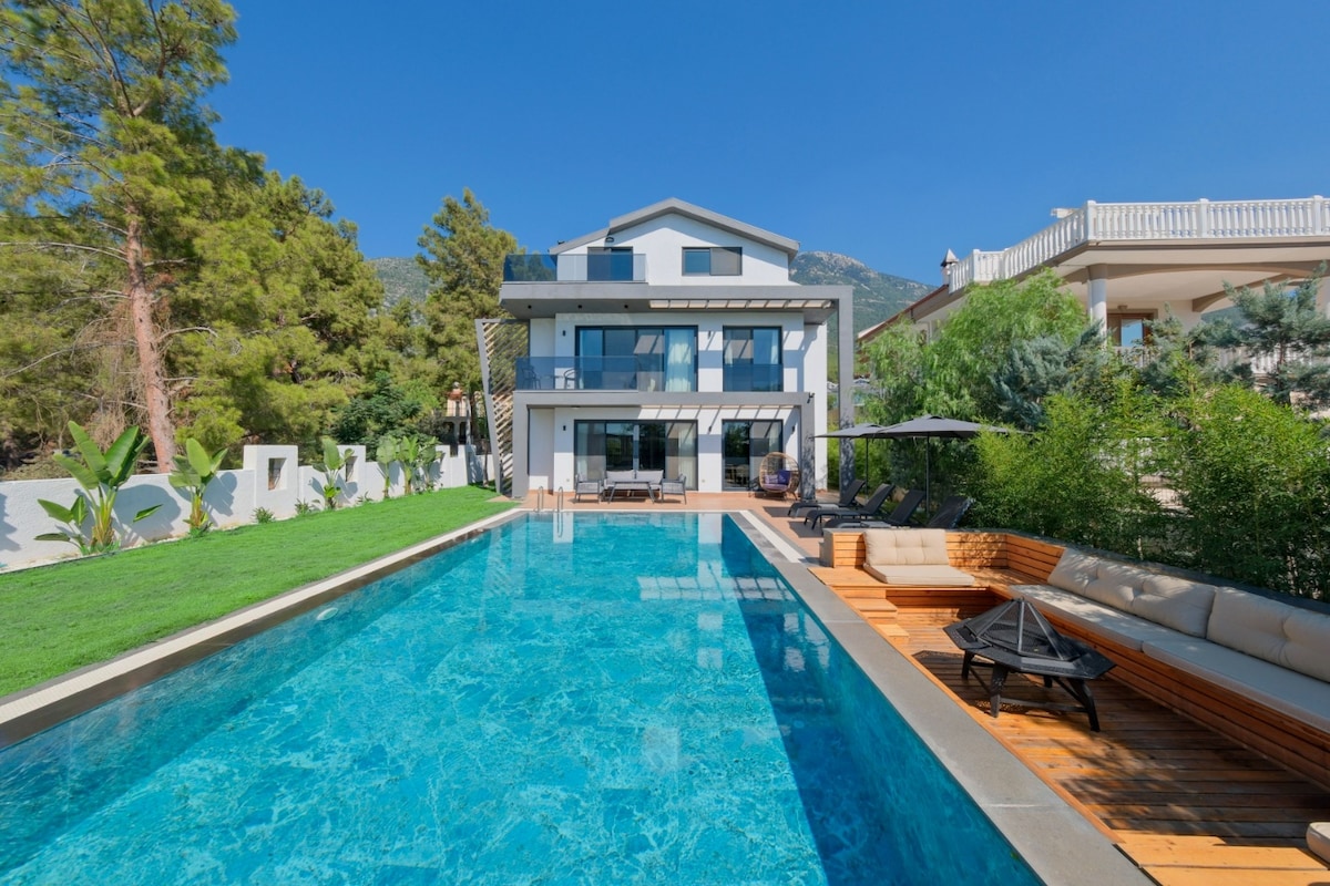 Villa Babadağ was designed by me and a famous architect in 2020. the villa leaves nothing to be desired. A tropical garden, five whirlpools, a swimming pool with a waterfall, a jacuzzi with a children's pool, a large driveway, and large rooms meet our guests' every need. We have created a garden on the balcony and a hot tub with sea and city views. every minute you spend in the villa is an absolute pleasure