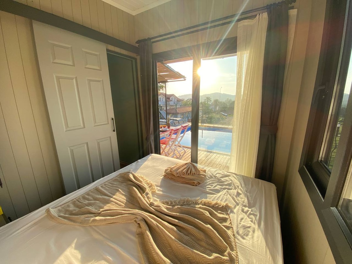 -Burası öyle bir konumdaki -Fethiye'nin en yeşil noktasında -200 metre kare korunaklı özel bahçe -Hem Denize(5 km) hem Fethiye'ye(15 km) hem de Ölüdeniz’e(30) oldukça yakın -Hem Fethiye içi, hem orman havasındağ -İnanılmaz izole -Evin içi tamamen ahşaptan -Yepyeni tertemiz eşyalar -Çift kişilik jakuzi -Bahçede özel havuz -Geyik mangal keyfi -Otoparklı -Dalaman havalimanından ulaşım sağlanır.(Ücretli) -Havuzlar Nisan sonunda kullanıma açılmaktadır. -Havuzlar Ekim başında kullanıma kapanıyor