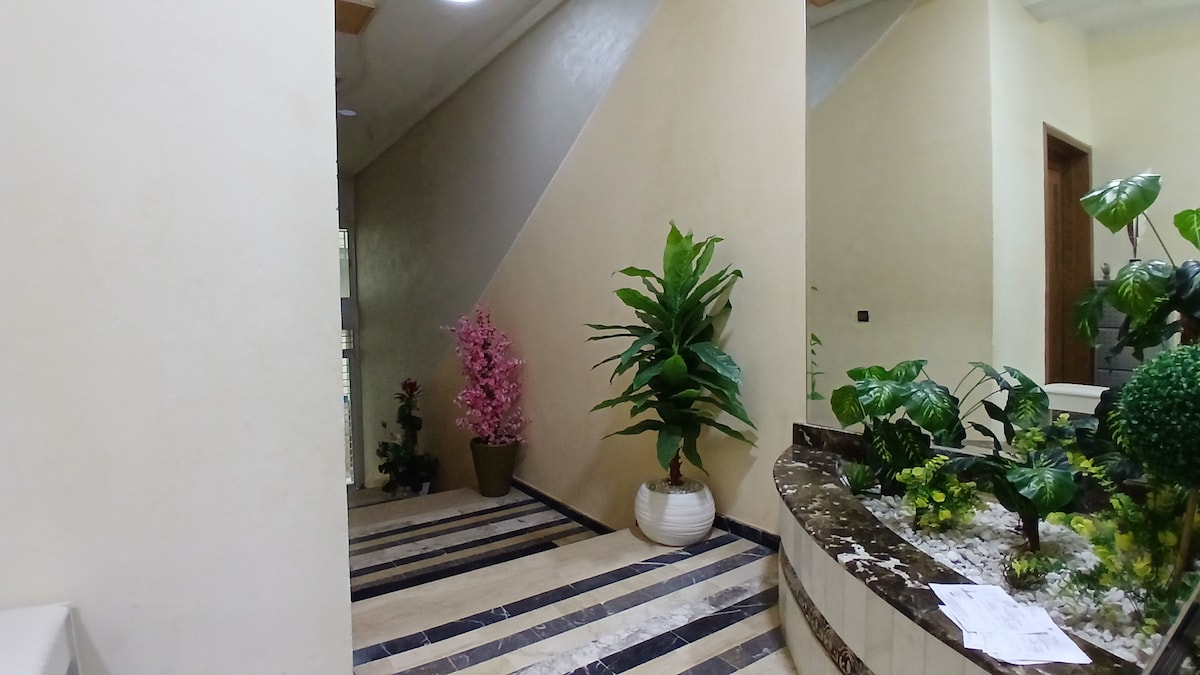 Votre chez-vous au cœur de Meknès ! ✨ Découvrez ce superbe appartement, un havre de paix alliant modernité et charme local. Parfait pour familles, couples et voyageurs d'affaires. 🌇 Savourez la vue panoramique unique depuis le balcon. 🎬 Détendez vous le soir devant la Smart TV 65" (Netflix, Disney+). 🔑 Profitez du Wi-Fi rapide, de la cuisine équipée et du garage gratuit. 📍 Emplacement idéal pour tout explorer à pied. 🚭 Appartement 100% non-fumeur. Arrivée simplifiée.