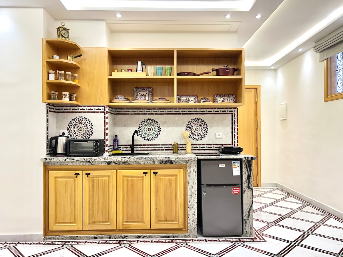 Vivez une expérience unique au cœur de la médina de Fès dans notre maison d’hôte pleine de charme. Nos suites spacieuses, décorées dans un style traditionnel élégant, allient confort et authenticité pour un séjour inoubliable. Profitez d’une magnifique terrasse offrant une vue imprenable sur l’ancienne médina, idéale pour se détendre, partager des moments en famille ou admirer les couchers de soleil.