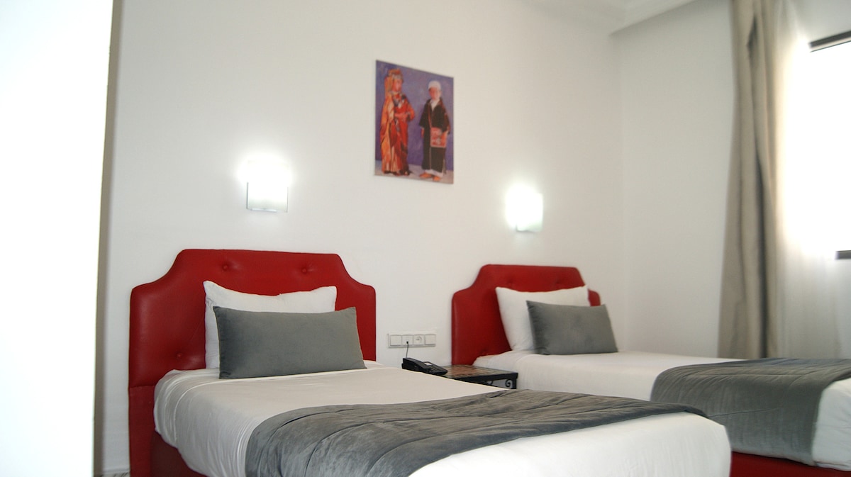 Stay in the heart of the city at Hotel Nouzha in our spacious twin room. Bright, airy, and stylishly furnished, it’s perfect for exploring nearby attractions. Wake up to a delicious breakfast included, relax in comfort, and enjoy a premium city-center stay ideal for friends, colleagues, or solo travelers. Guests benefit from our 24/7 front desk service, always ready to assist with your needs. Start each morning with a complimentary breakfast at our in-house restaurant.