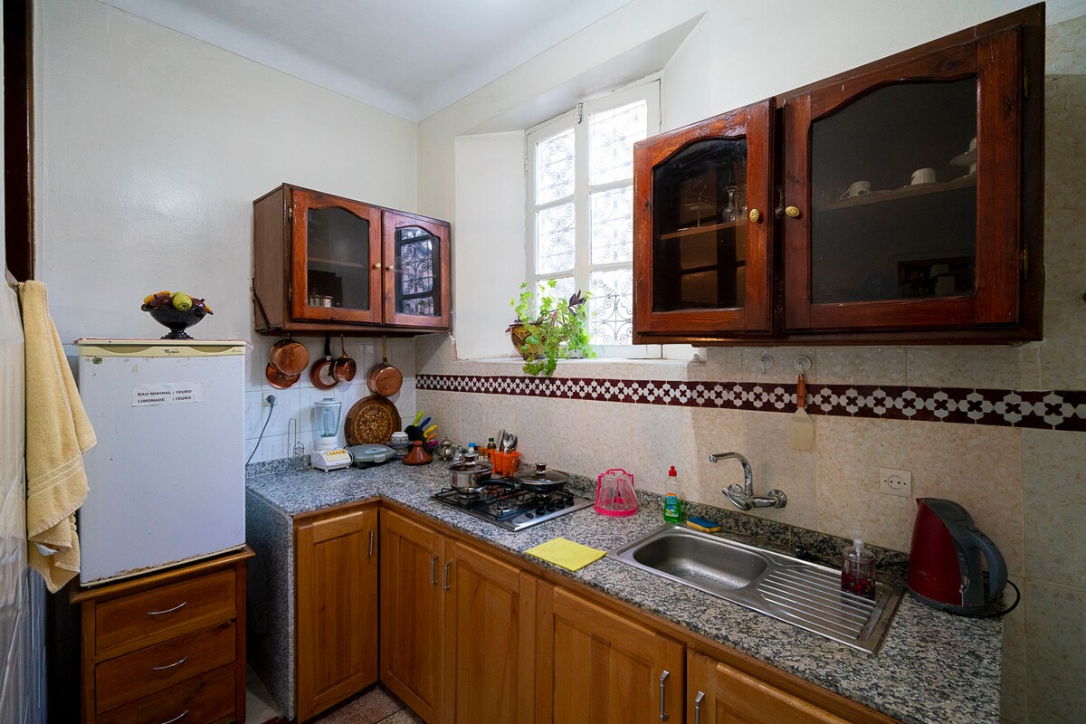 Apartment Lumière is a bright, two-bedroom apartment at the top of the Fez Medina, set on a quiet pedestrian street. Tastefully decorated, spotlessly clean, and air-conditioned, it offers a peaceful retreat just moments from the souks. Enjoy a sunlit balcony with leafy views, a well-equipped kitchen, comfortable living space, and easy access to shops, restaurants, taxis, and nearby parking. Ideal for families or small groups.