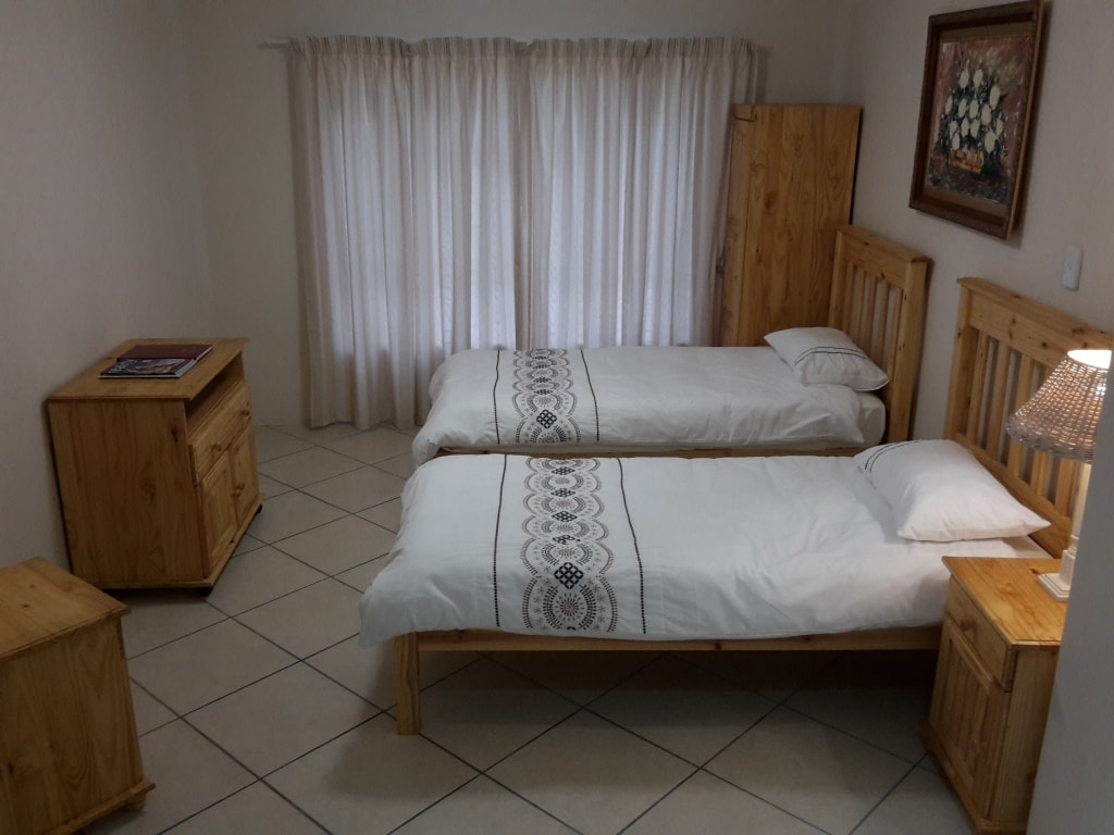 The Cottage is a loose standing unit and has 2 bedrooms with a king size bed (which can be made into two single beds) in the main bedroom and a double bed in the second bedroom. These rooms share a bathroom with a shower and separate toilet. There is a small lounge, dining table and chairs, a kitchenette and tea and coffee facilities as well as a TV with DStv select. Both rooms have air conditioning. This unit is serviced daily.
